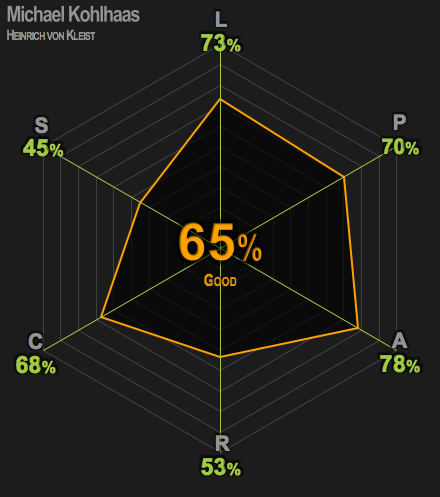 The balance tips when Michael takes justice into his own hands, gathers a band of brigands and takes revenge not just on those directly responsible but also on anyone even vaguely related to them. Michael is successful in his revenge but the excessive measures he uses raise outcry from the likes of even Martin Luther.